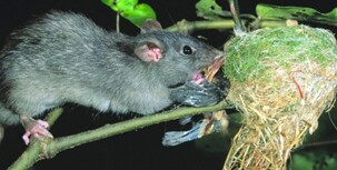 Both species are omnivorous, with a preference for grains. In a suitable environment rats will breed throughout the year, with a female producing three to six litters of up to 10 young. Ship rats are the most frequent predator of small forest birds, seeds, invertebrates, and perhaps lizards, in New Zealand forests, and are key ecosystem changers due to this predation. Ship rats are commonly found around buildings and farms, where they cause significant damage to any stored food or crops they are able to access.
